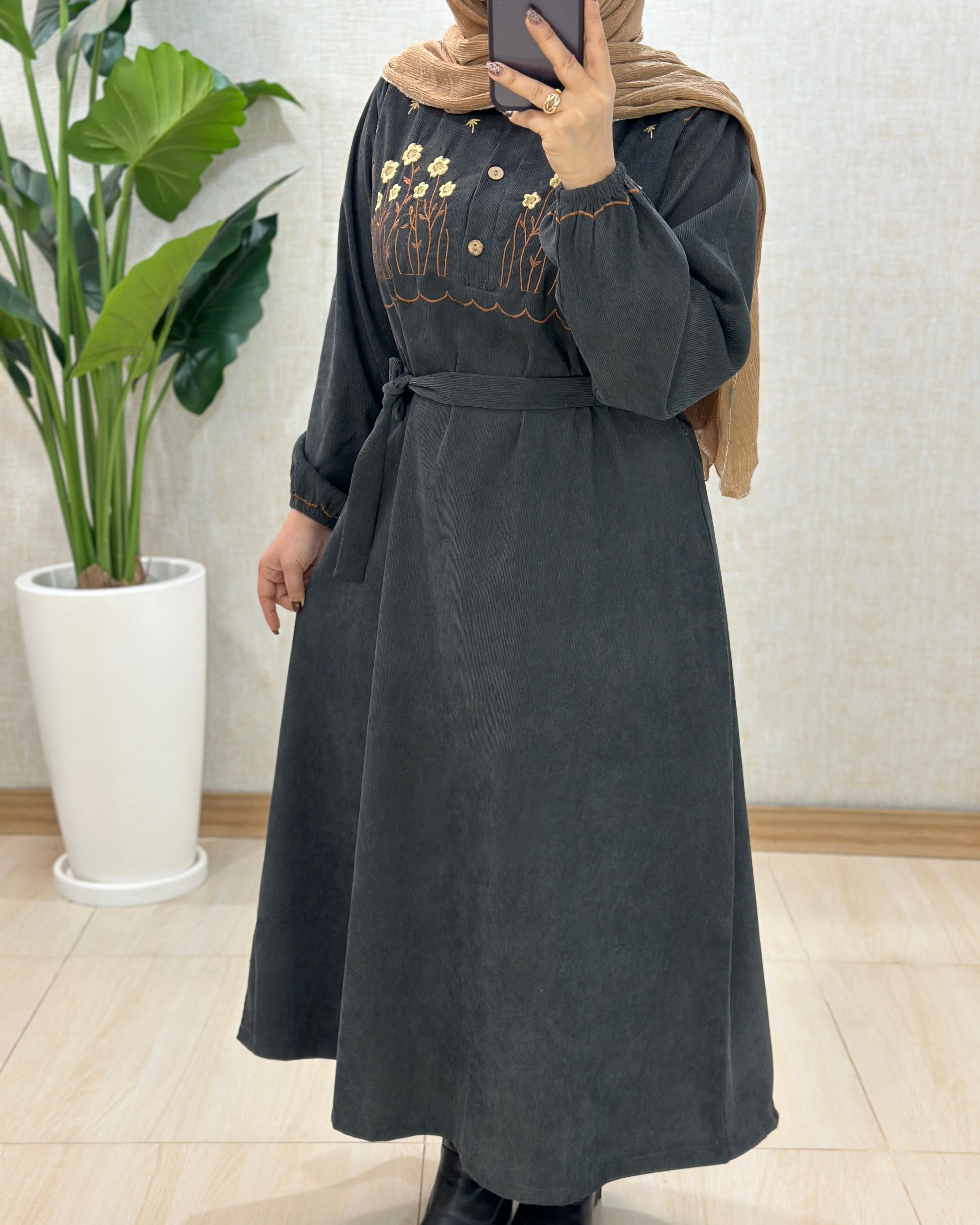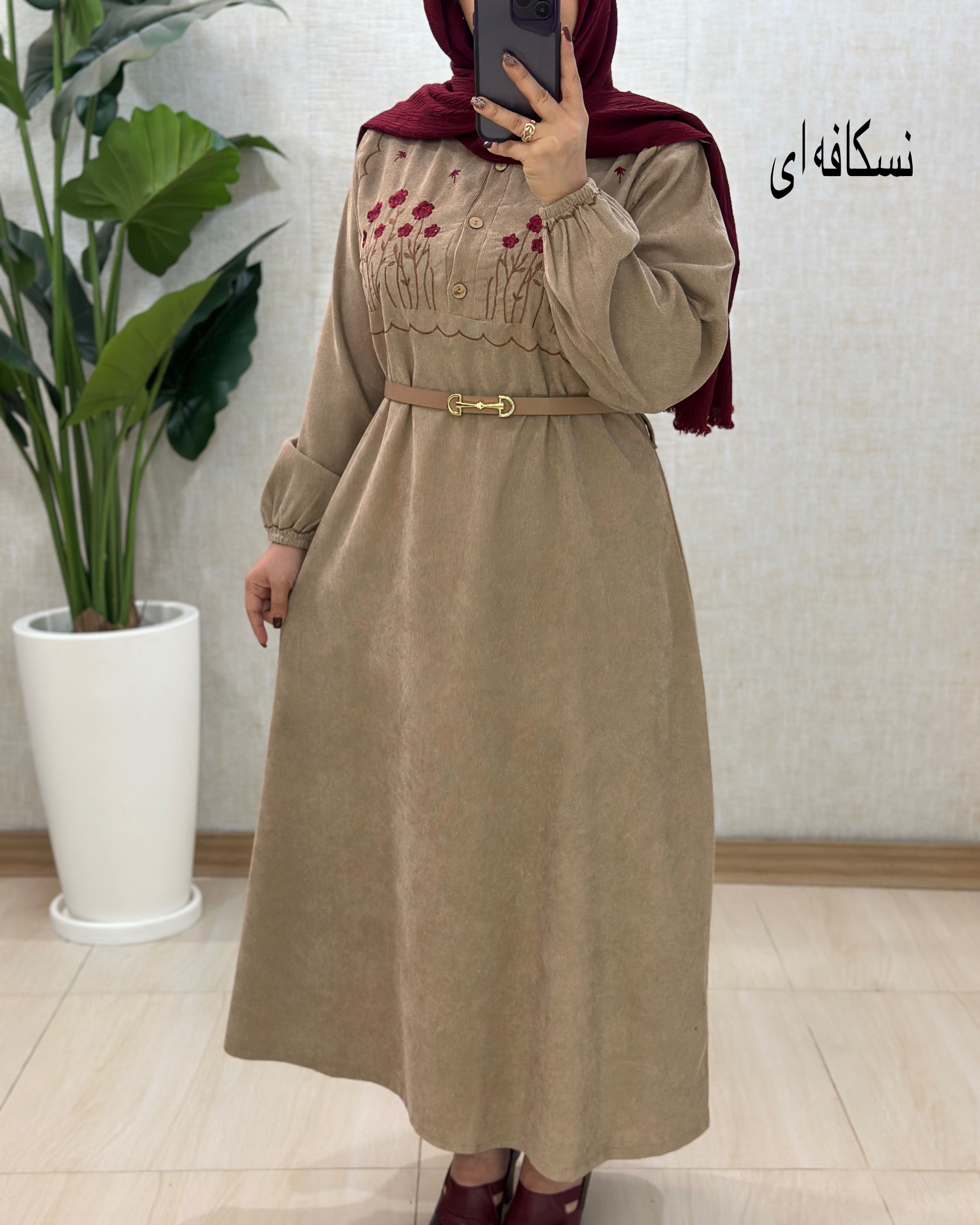 برای اطلاع از اندازه های دقیق لباس می توانید از راهنمای سایز که در پایین صفحه آمده است استفاده نمایید. واحد اندازه گیری سانتی متر می باشد (1 تا 2 سانتی متر خطا در اندازه ها را مد نظر قرار دهید).یه کمربند همجنس خود لباس همراهش هست